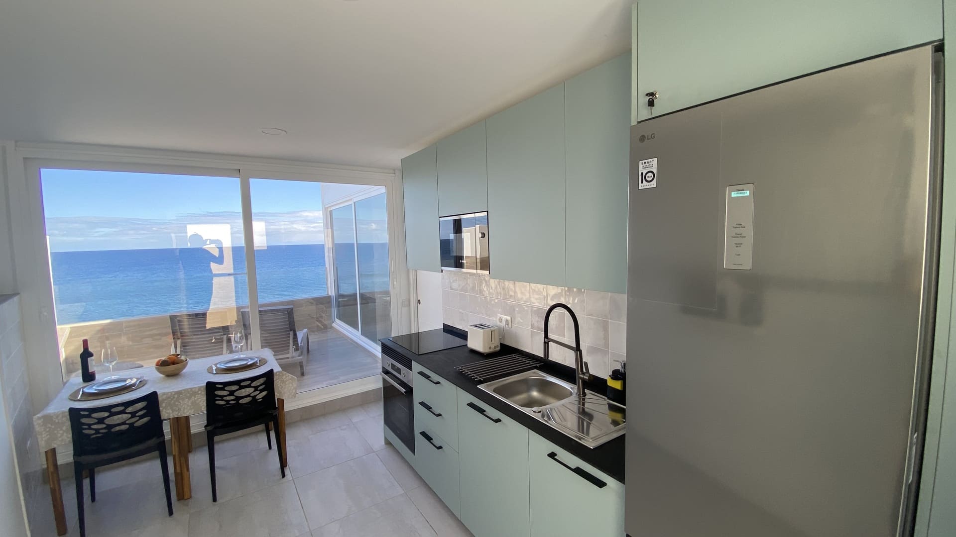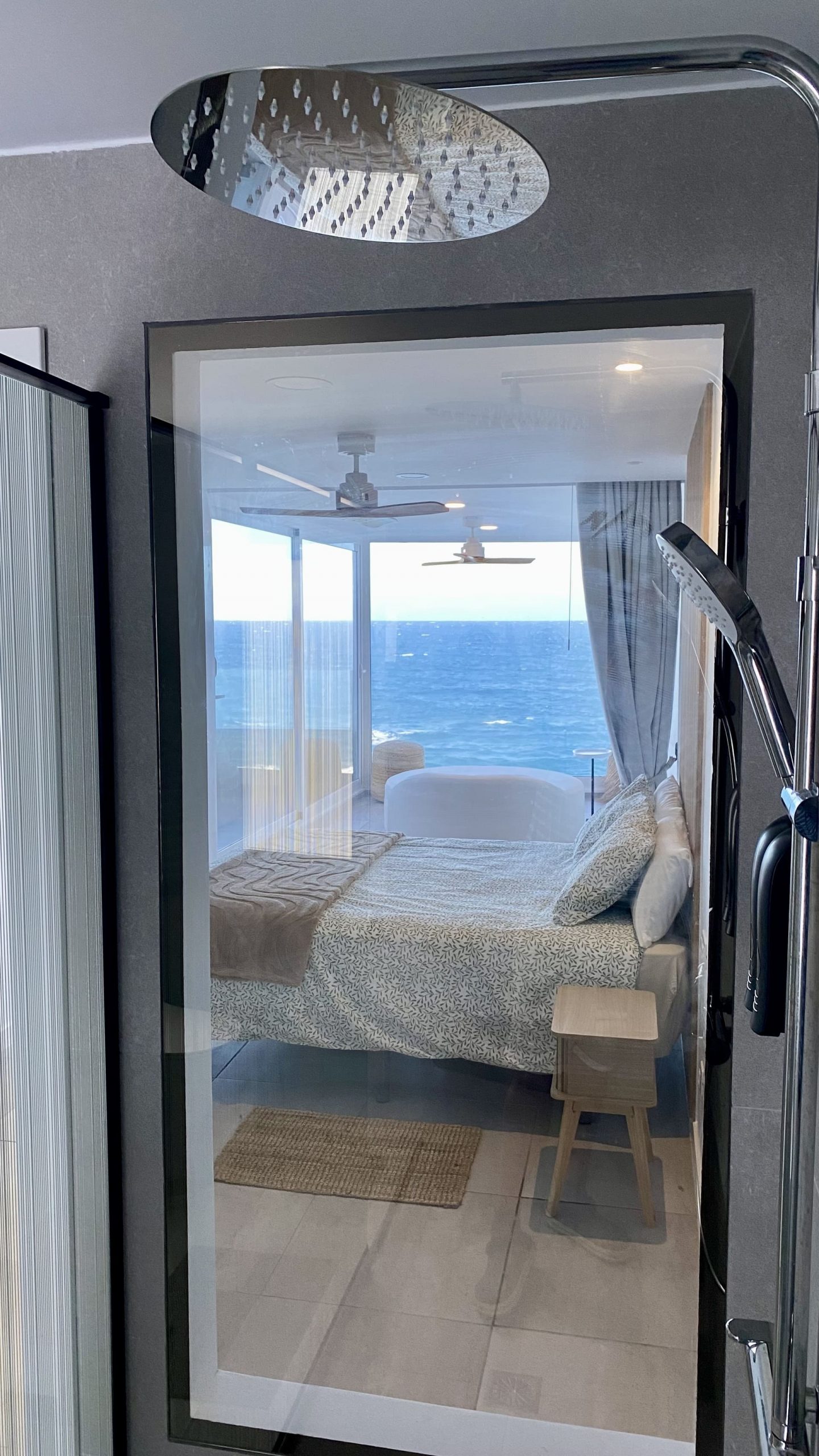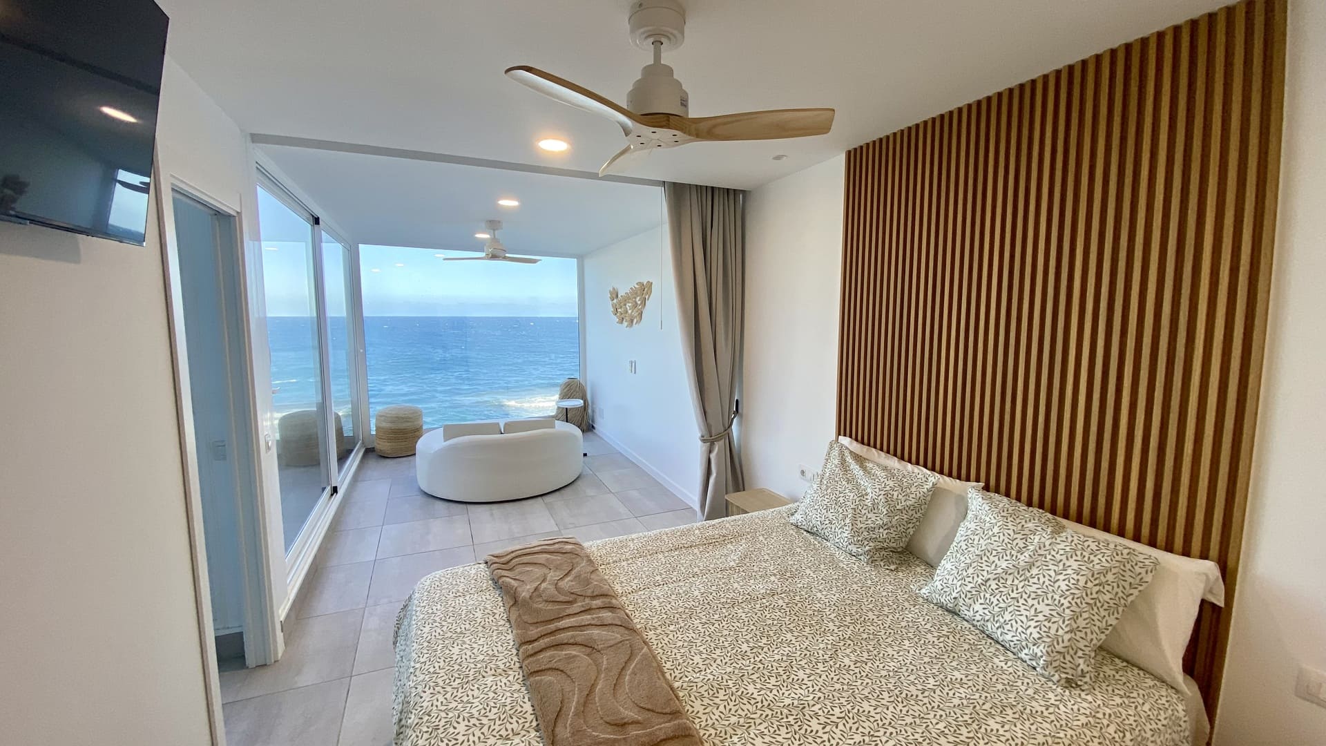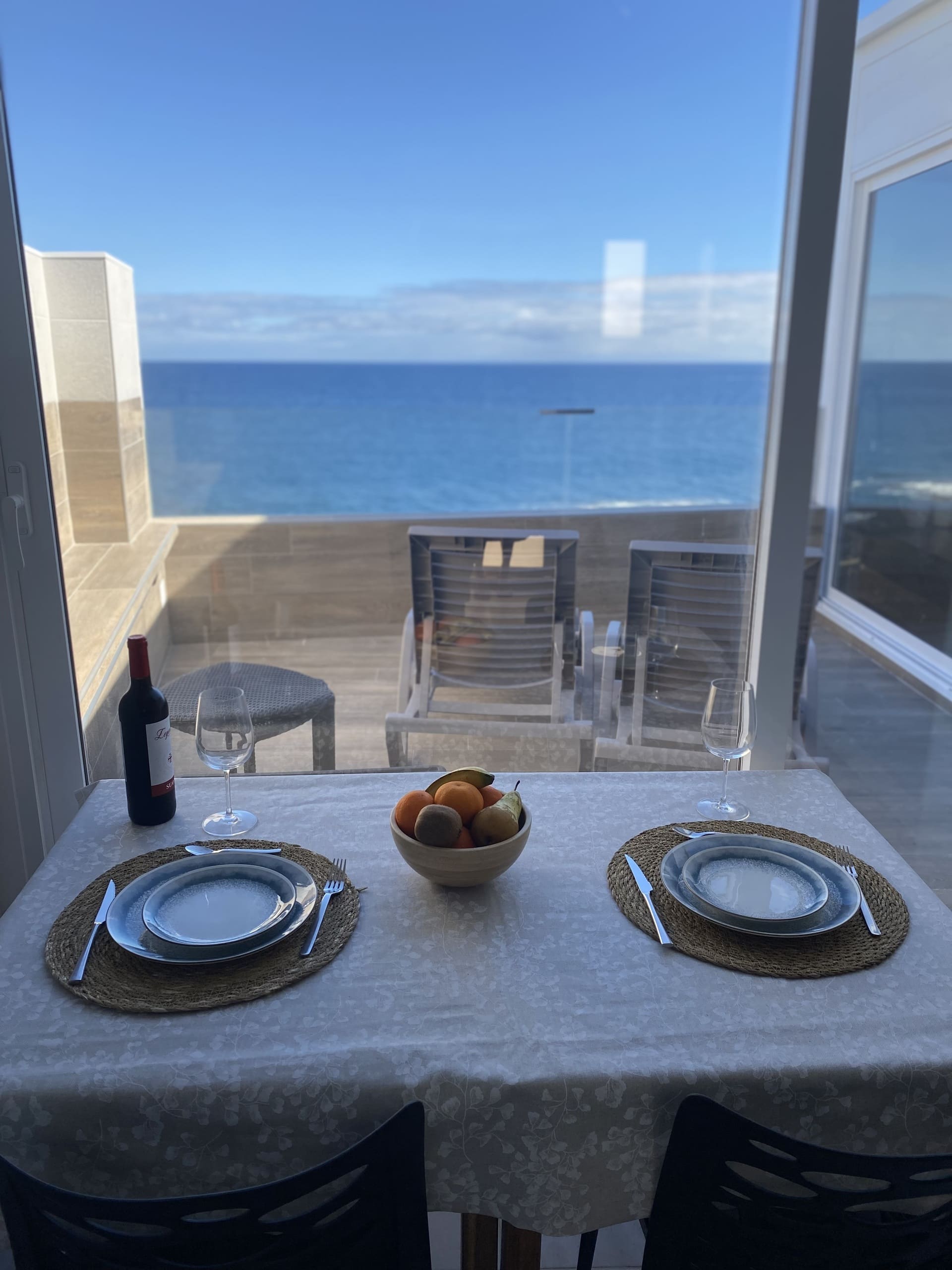 Imagina despertar, abrir la puerta y tener esto: una terraza luminosa con vistas directas al océano, donde cada mañana el mar te da los buenos días.